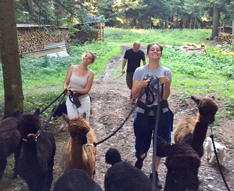 Zur Zeit haben wir auf dem Senggerhof 11 Alpakas, die mitspazieren können.